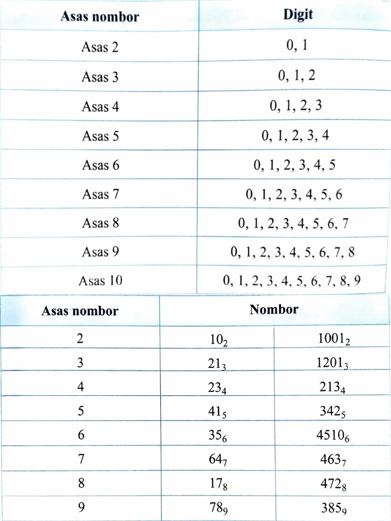 Ejercicio De Asas Nombor Menukar Ke Asas 10 Sebaliknya